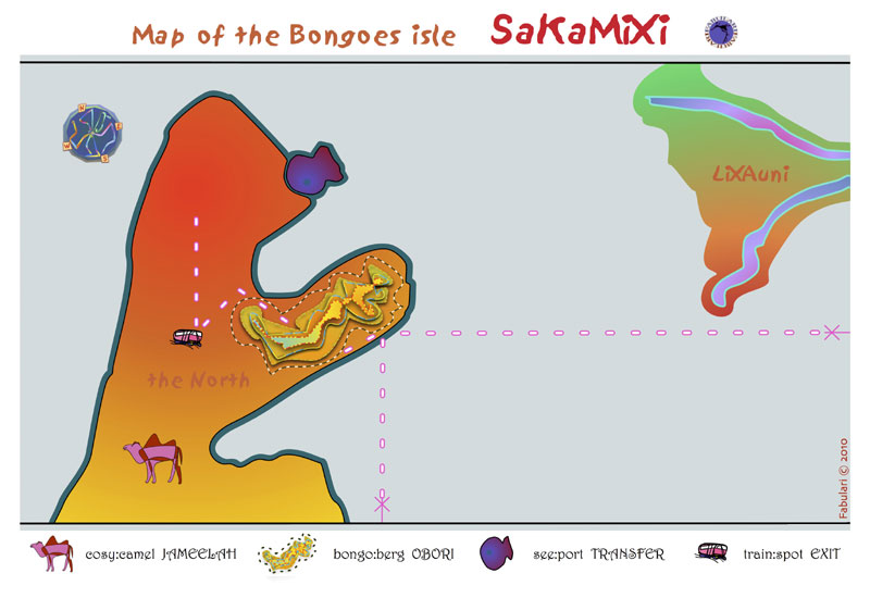 Here is the dessert and underneith it are many treasures Some caracters try to get some silently.